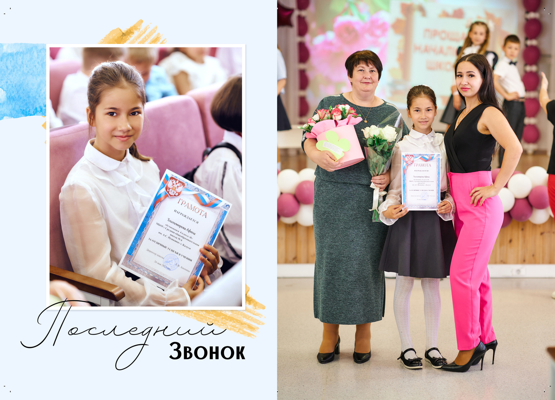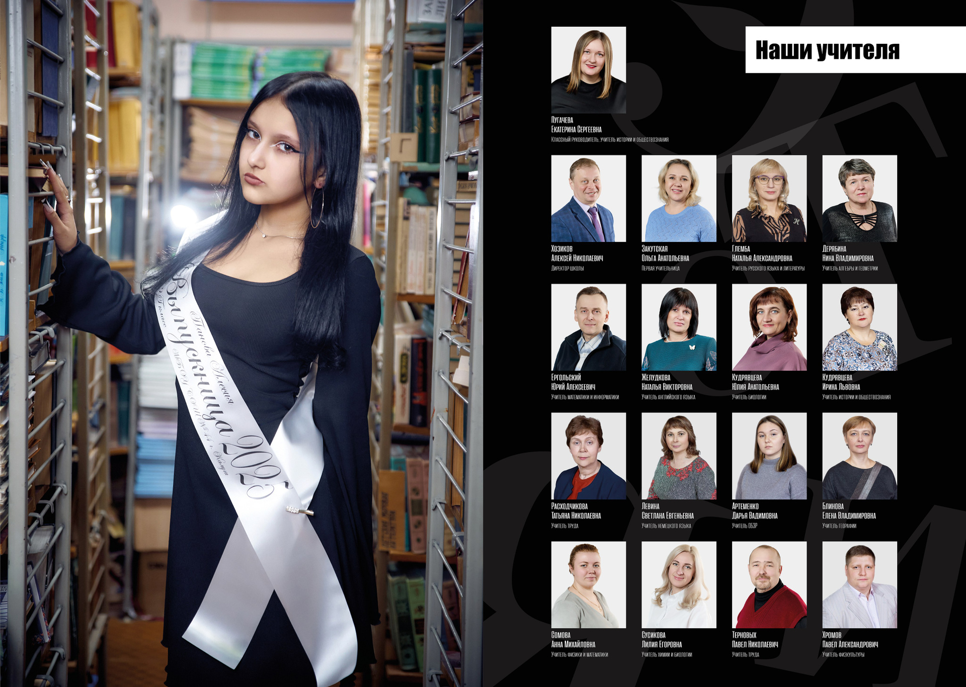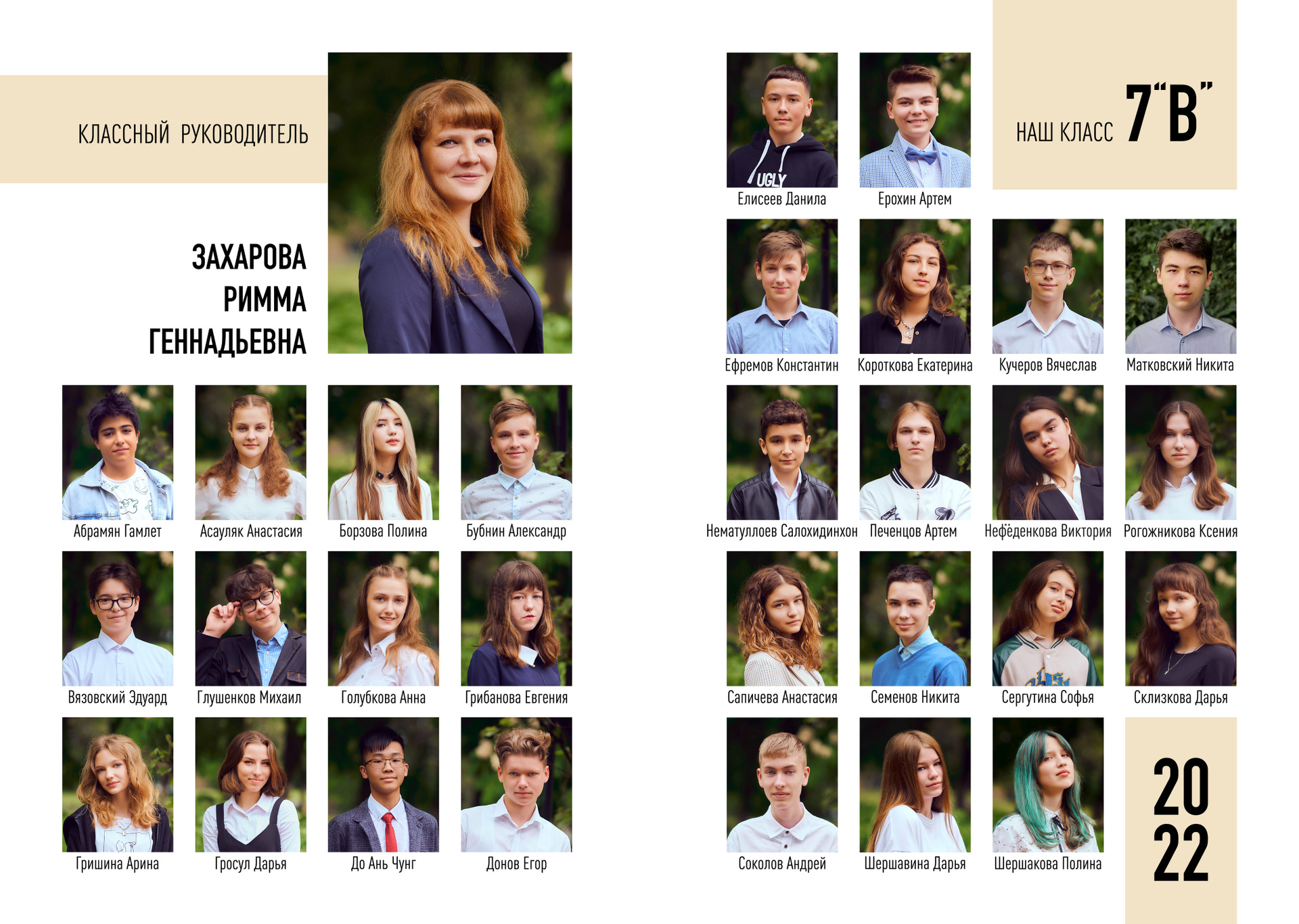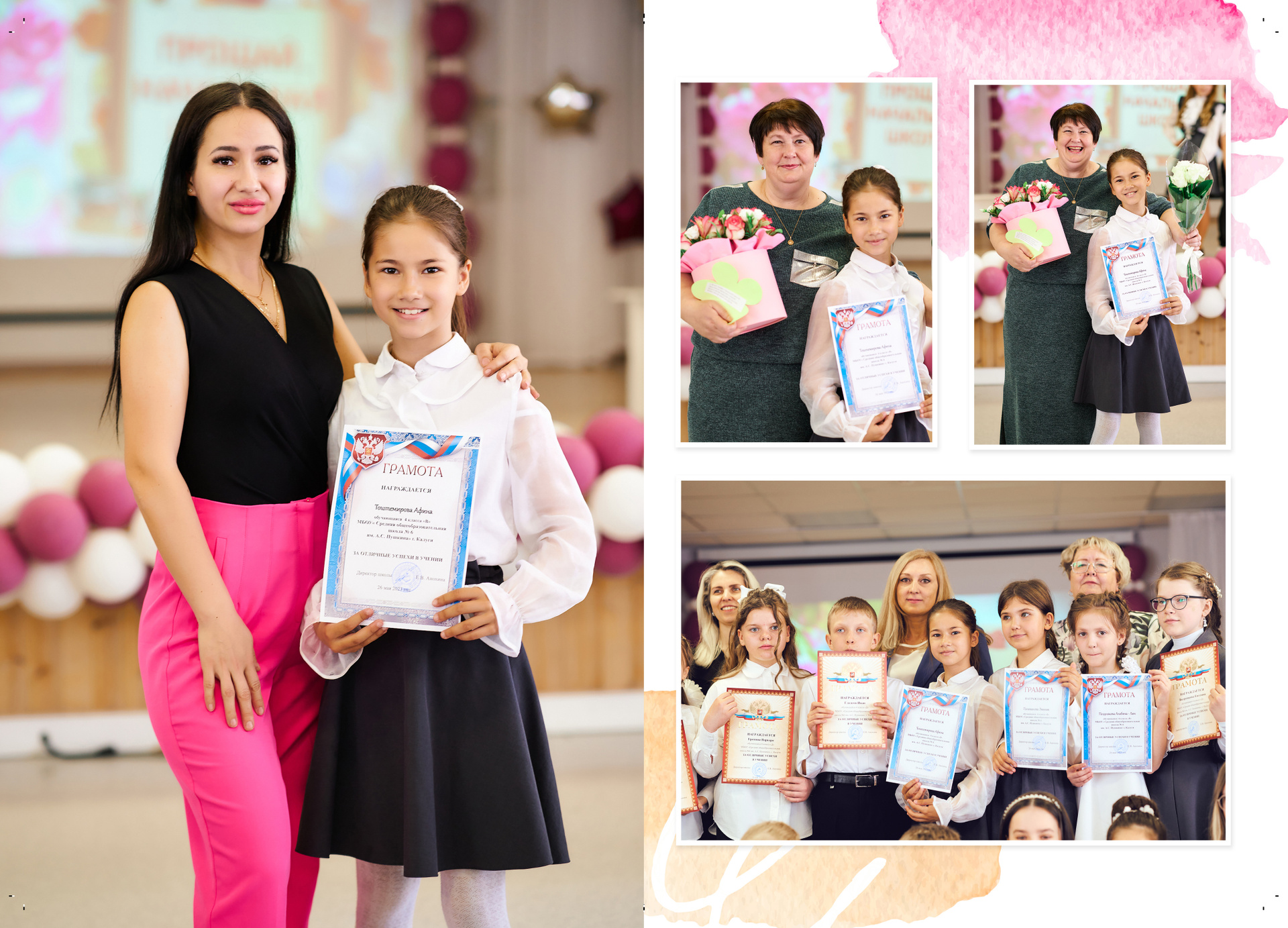 — 1 разворот персональный: портрет или портреты ребенка + фото учителя (учителей)