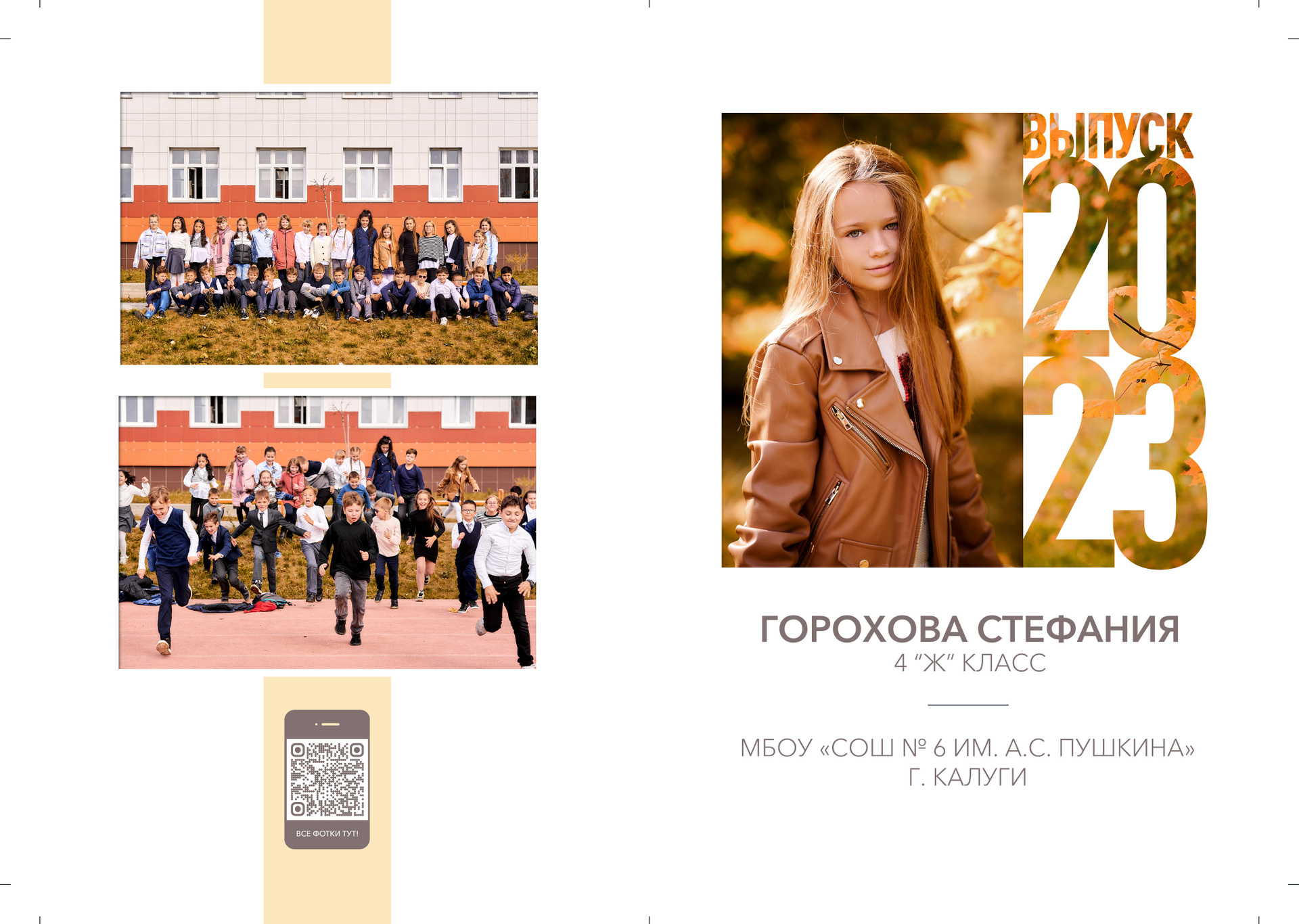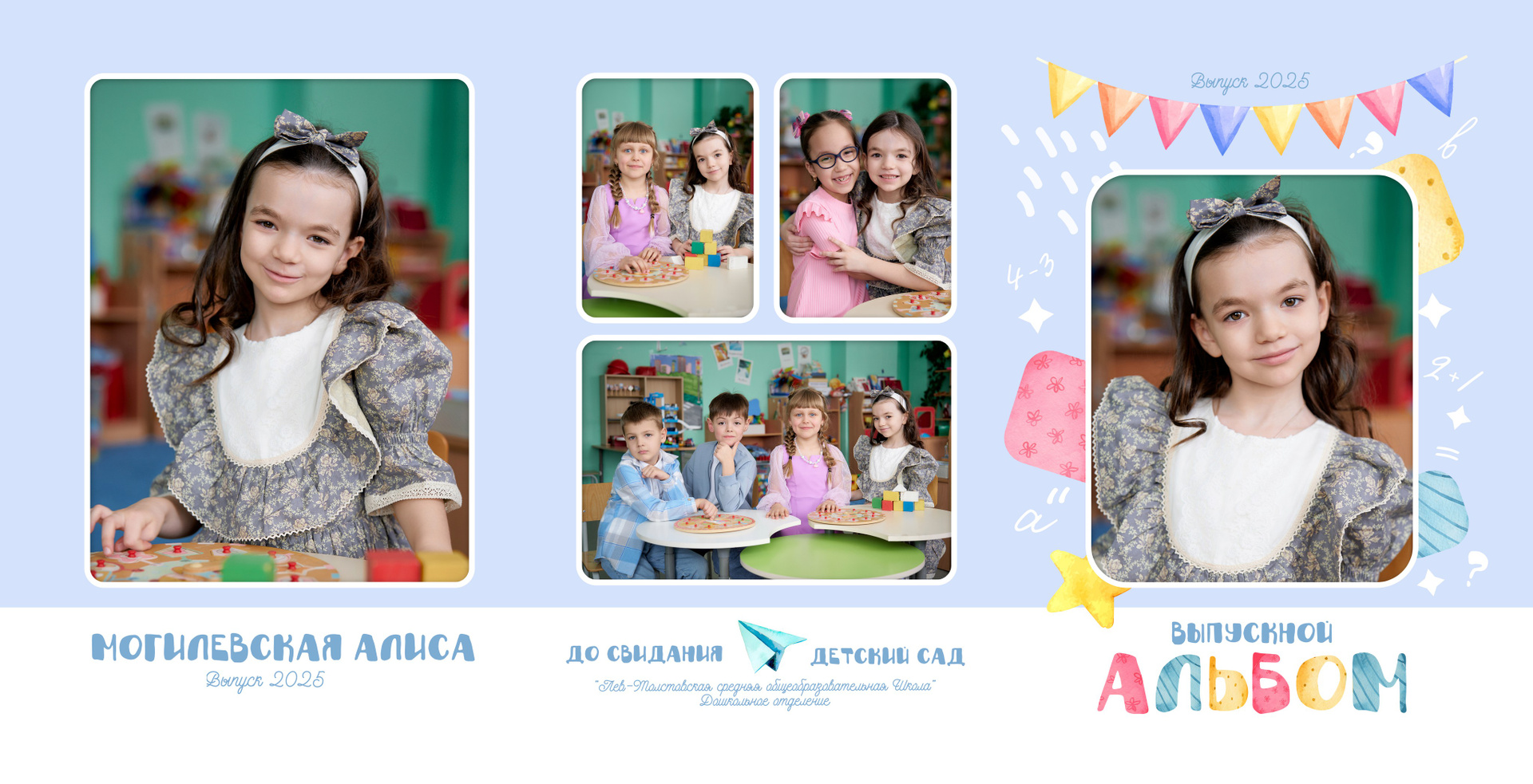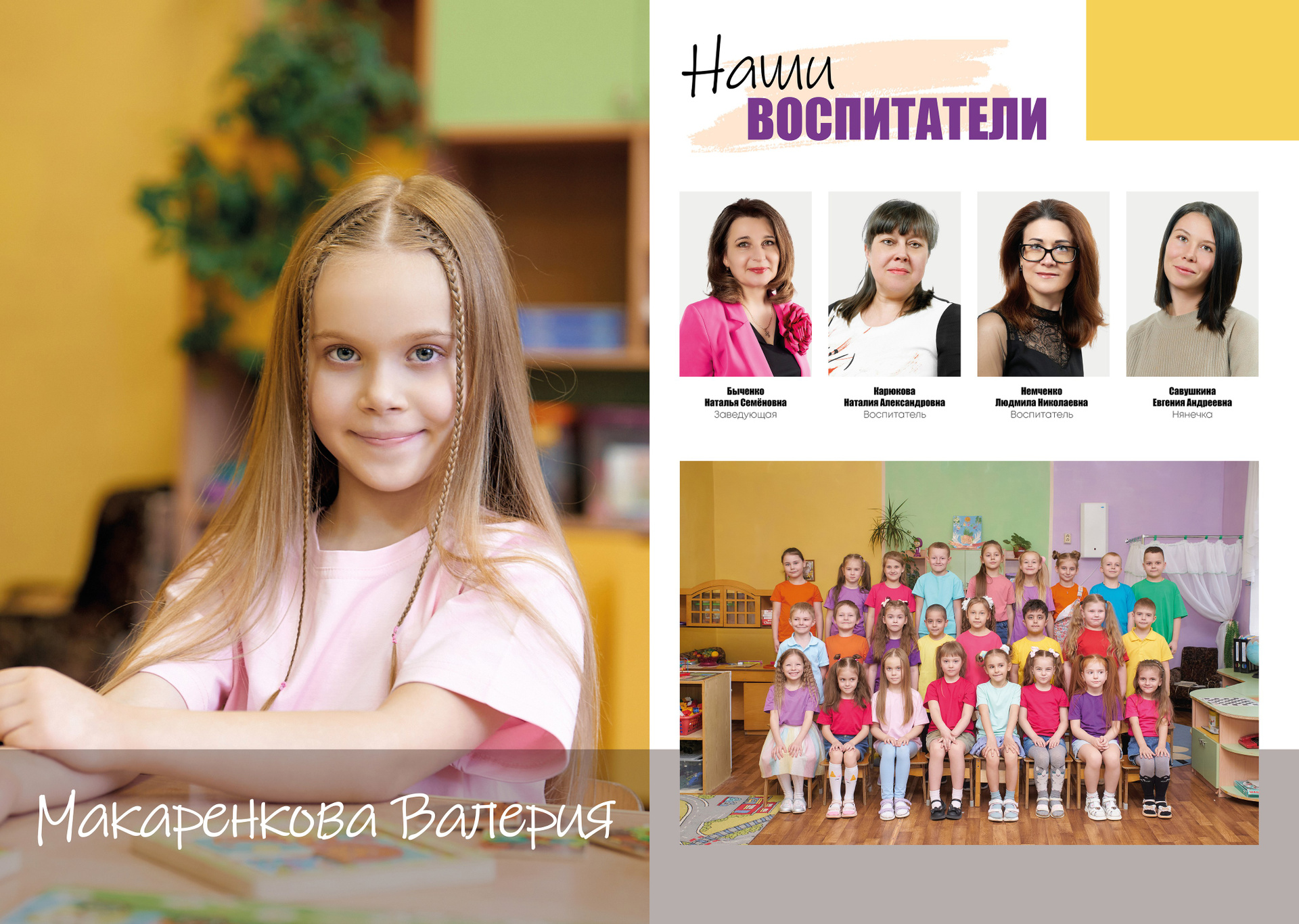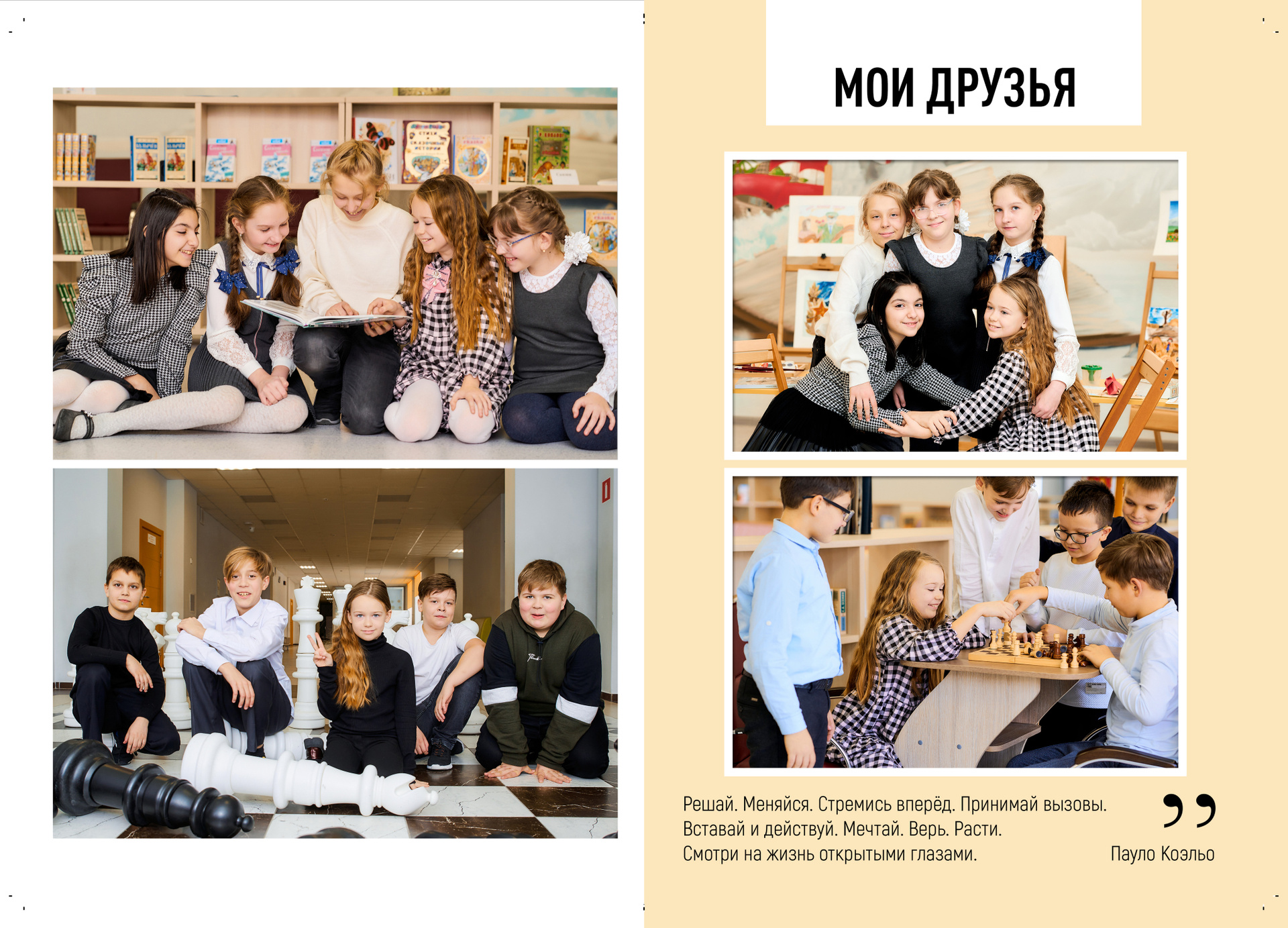 — 1 разворот персональный: портрет Ребенка и групповые фотографии с друзьями
