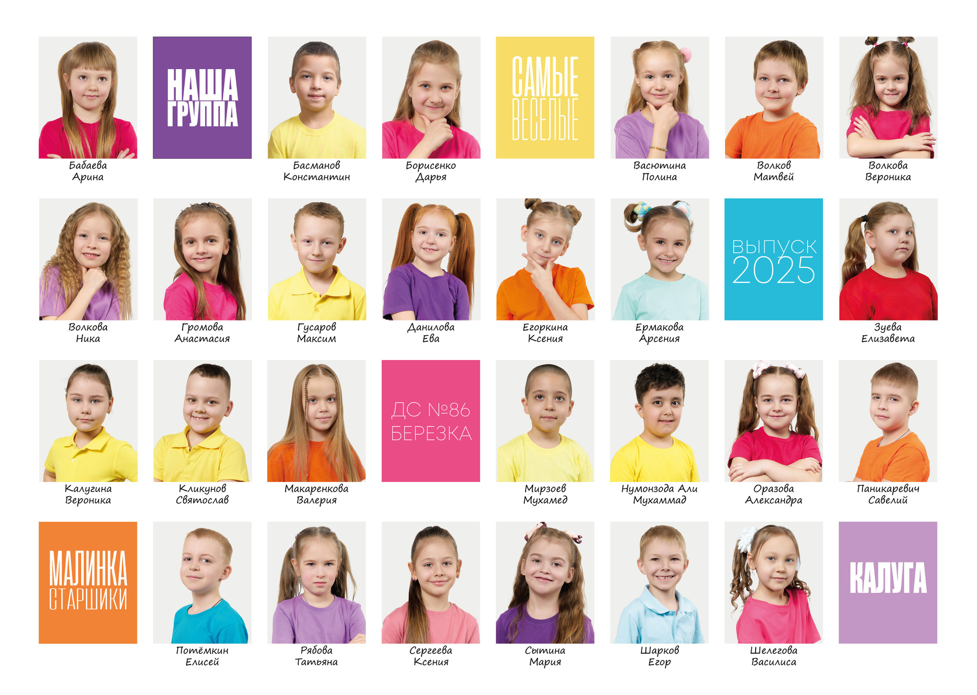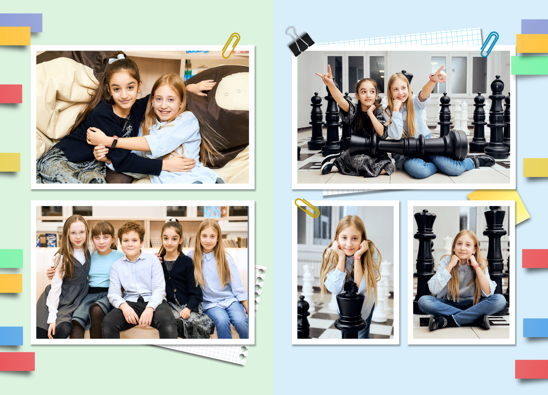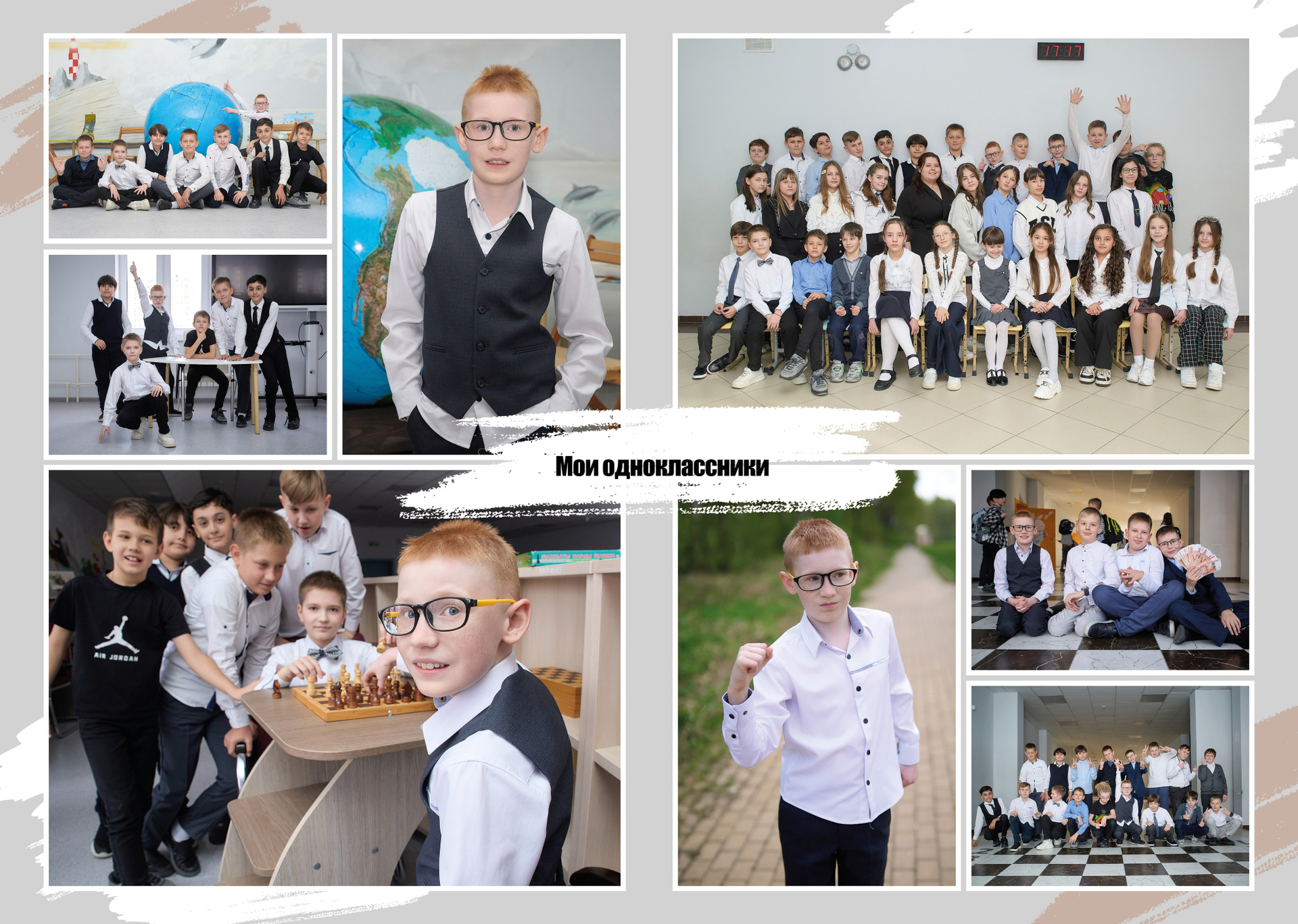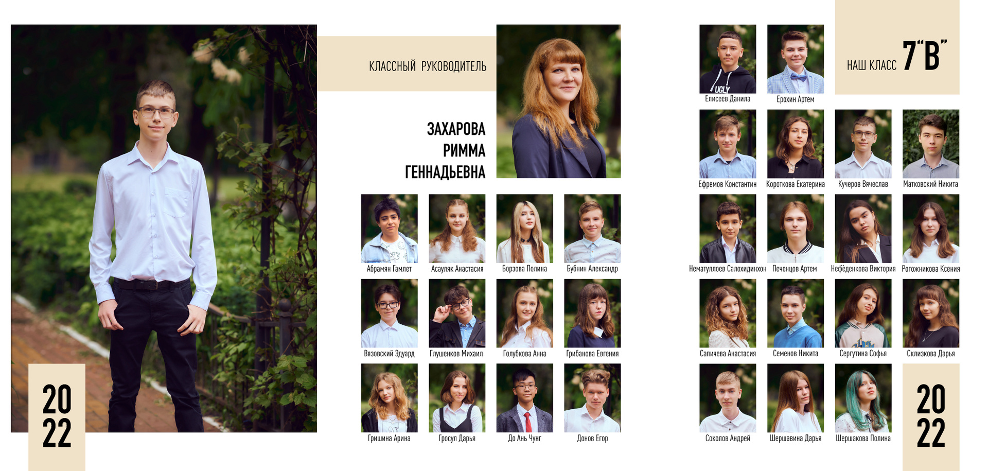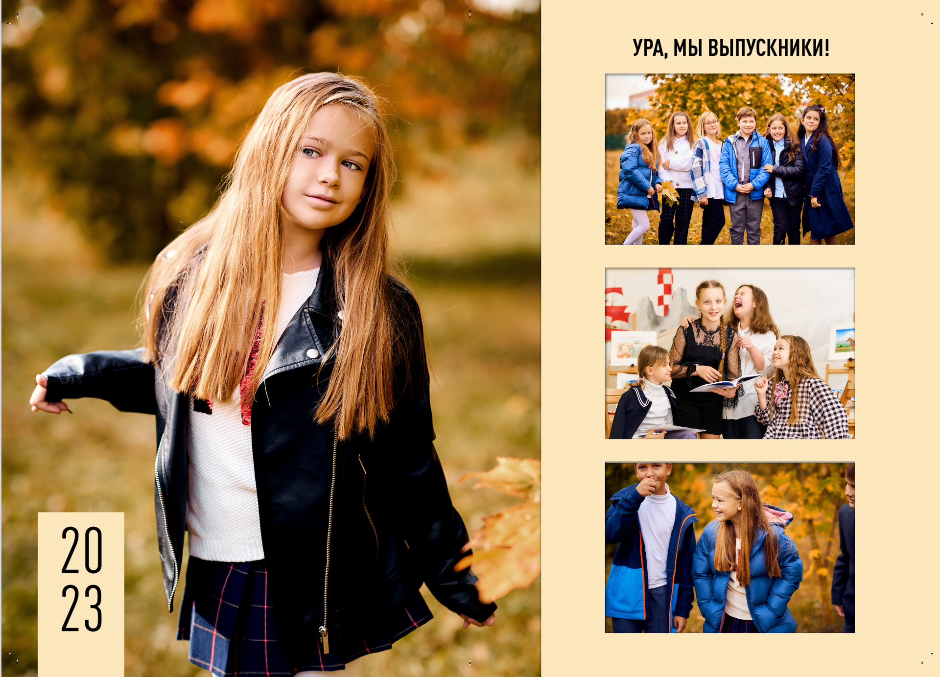 — 1 разворот персональный: портрет Ребенка и групповые фотографии с друзьями