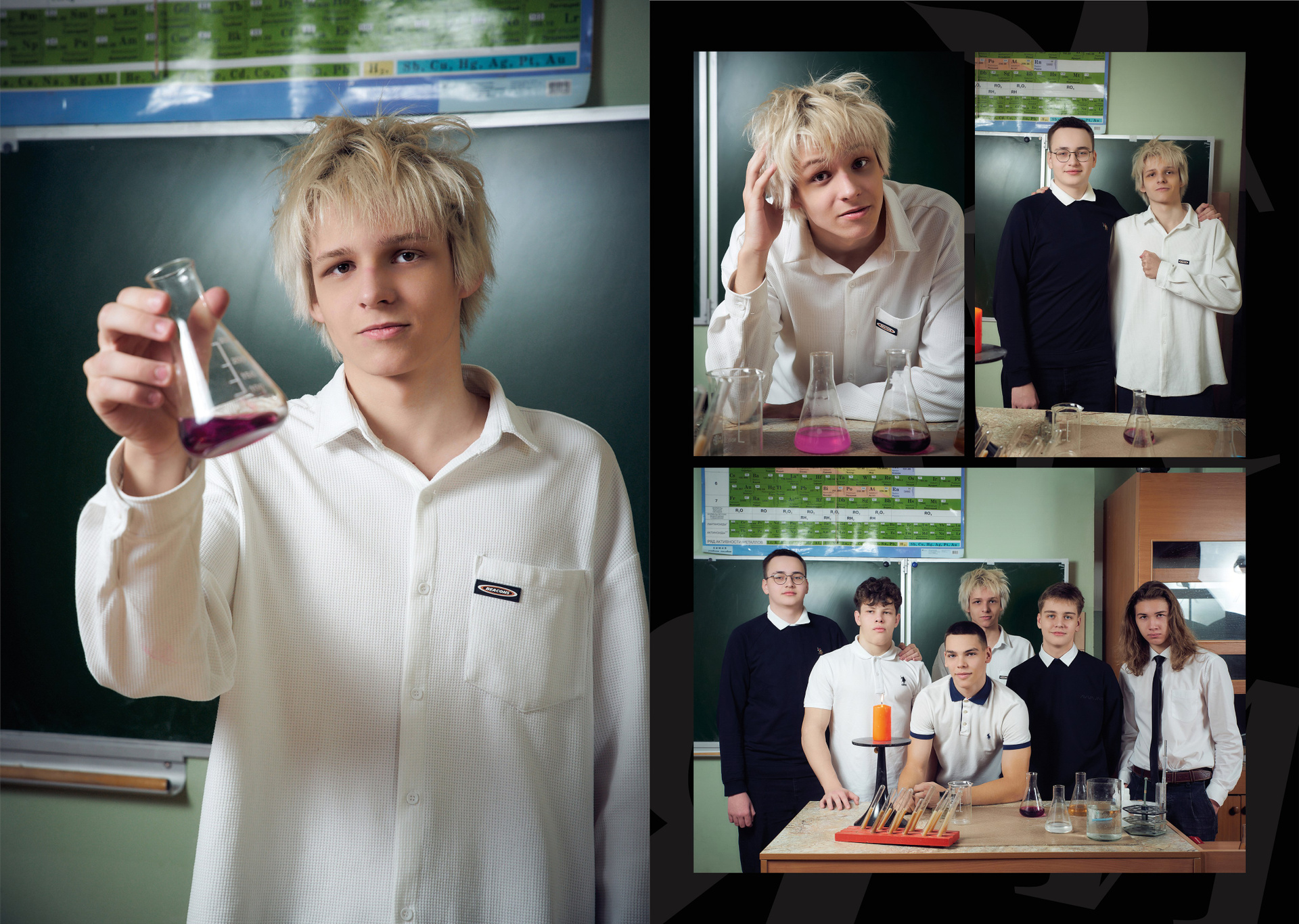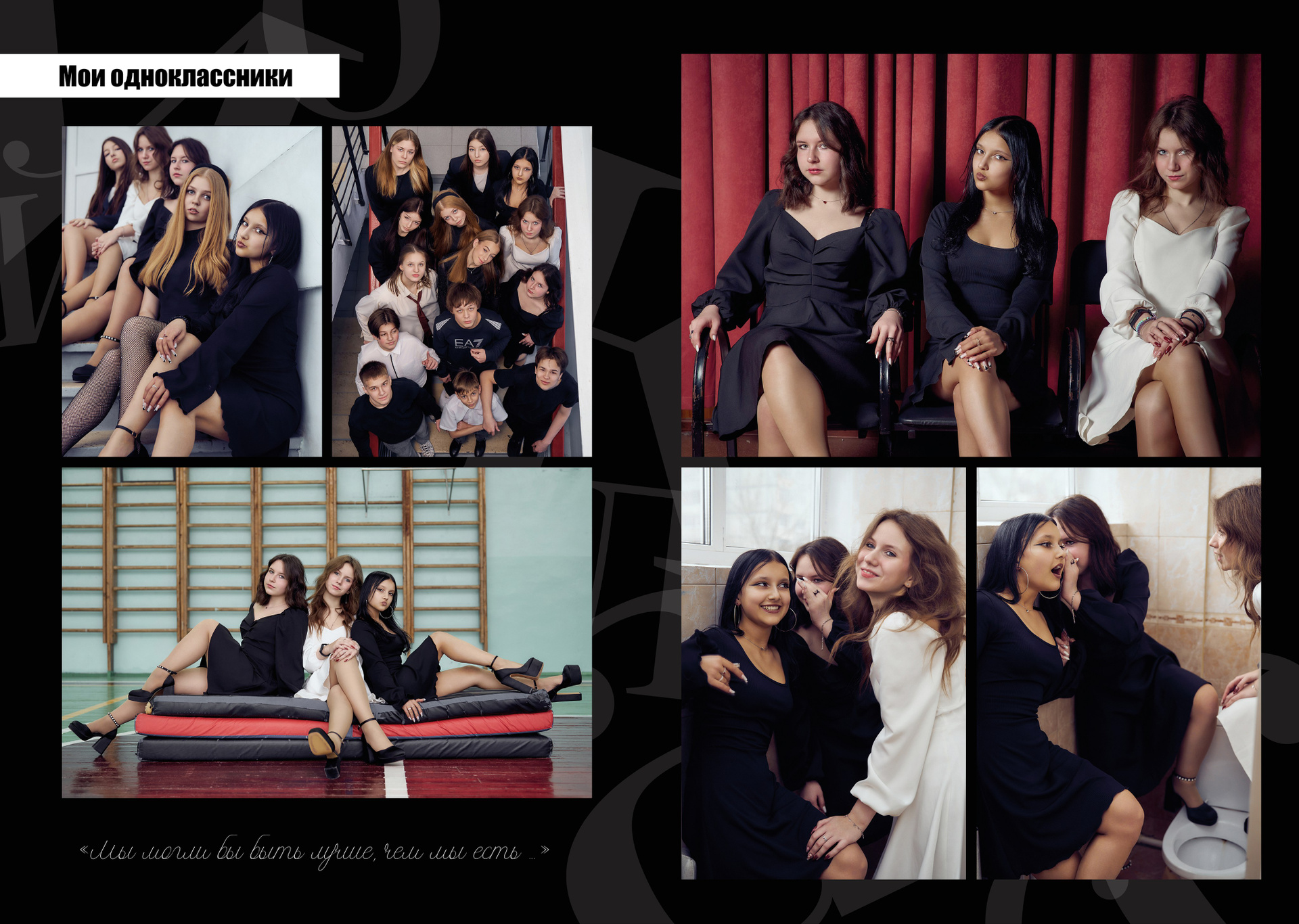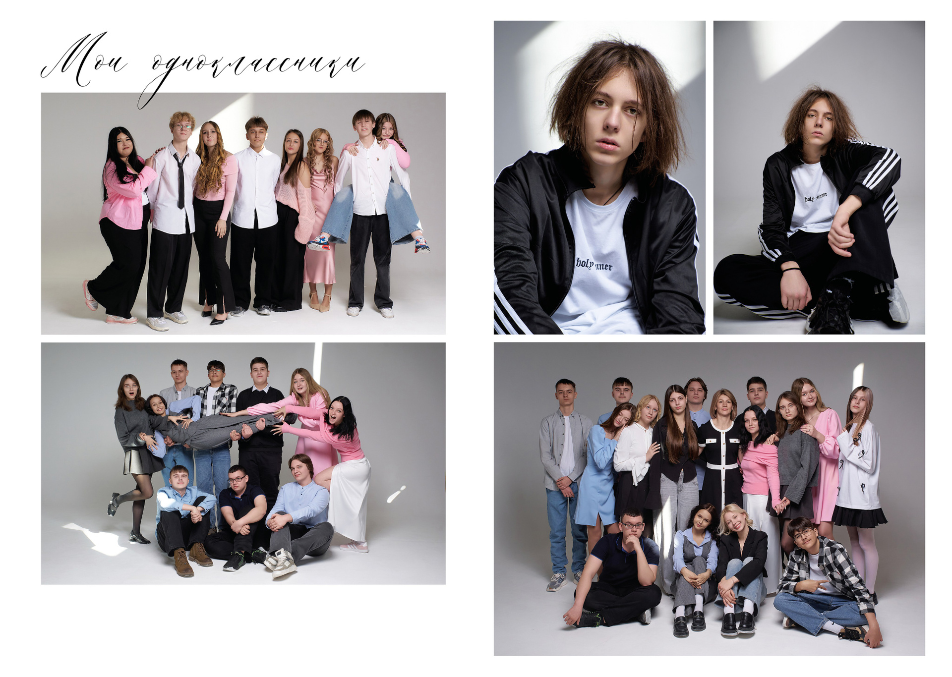 - Все фотографии проходят обработку в виде цветокоррекции, ретушируются (выразительные глазки и стоп-прыщ) и выдаются на выбор школьникам и их родителям. Альбом в итоге получается максимально индивидуальным.